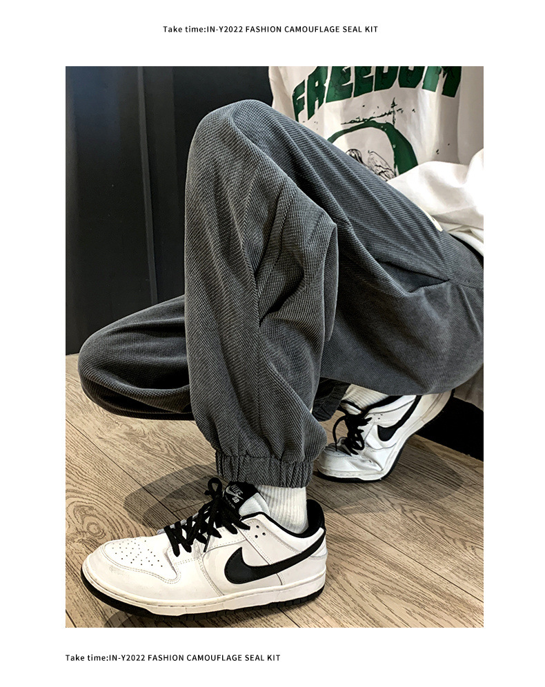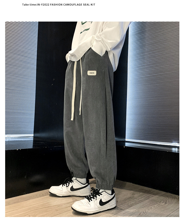 가을과 겨울 바지 남자의 두꺼운 유행 느슨한 발목 바지 기모 모든 경기 스포츠 바지 유행 브랜드 캐주얼 스웨터 바지