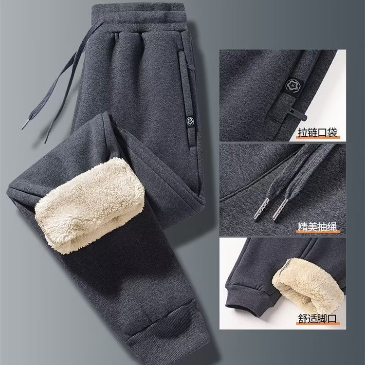 남자의 양고기 양털 따뜻한 기모 두꺼운 캐주얼 바지 남자의 겨울 새로운 긴 바지 포켓 지퍼 스포츠 운동복 바지