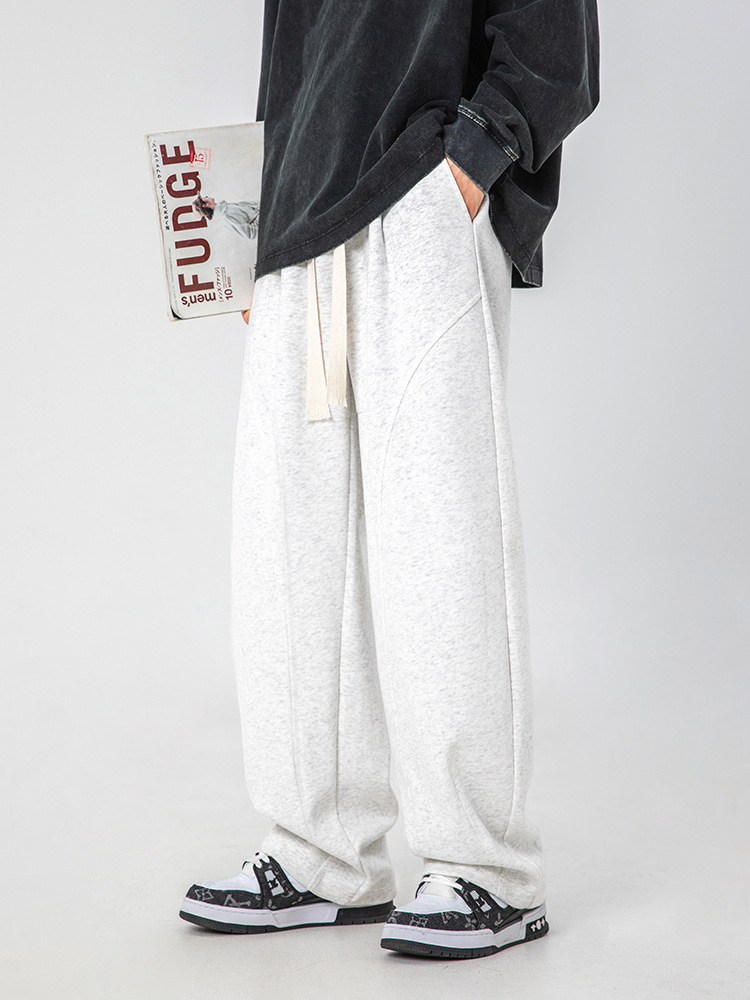 400G 헤비급 질감 캐주얼 바지 남성 봄 신작 곡선 스웨트 팬츠 스플릿 플리츠 디자인 드레이프 루즈 팬츠