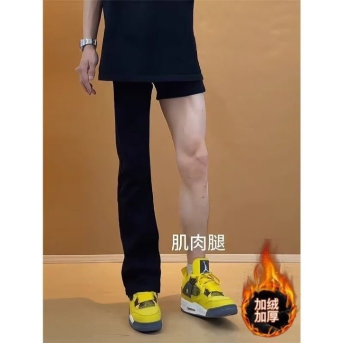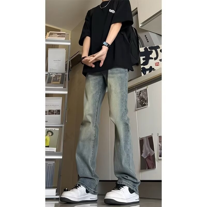 블랙 웨이브 진 남성용 가을 겨울 클린핏 팬츠 아메리칸 하이 스트리트 스타일 스트레이트 약간의 플레어 팬츠 트렌디 브랜드