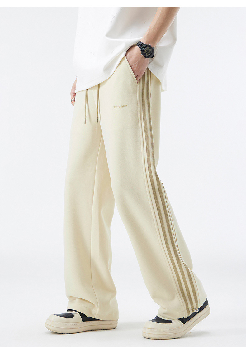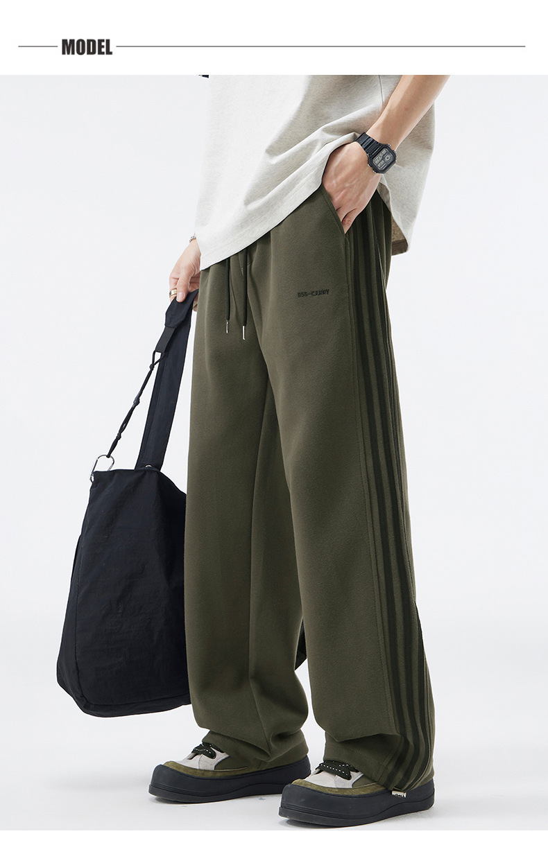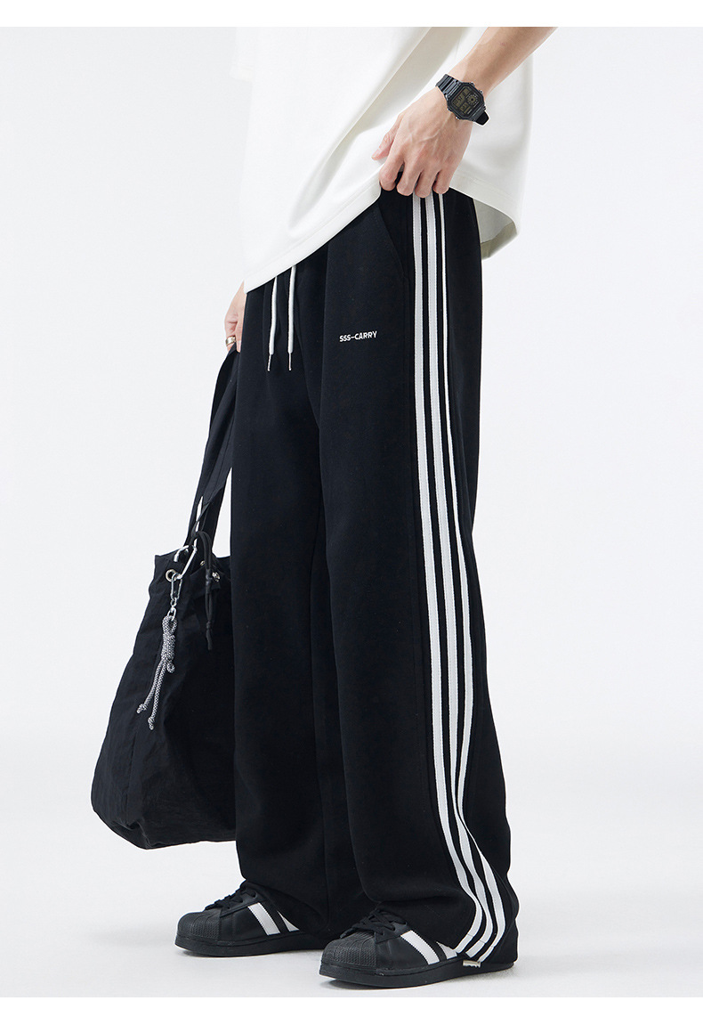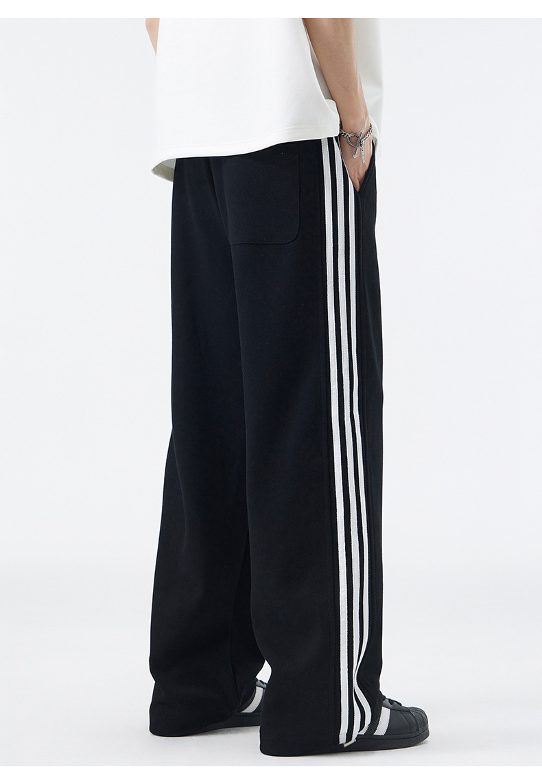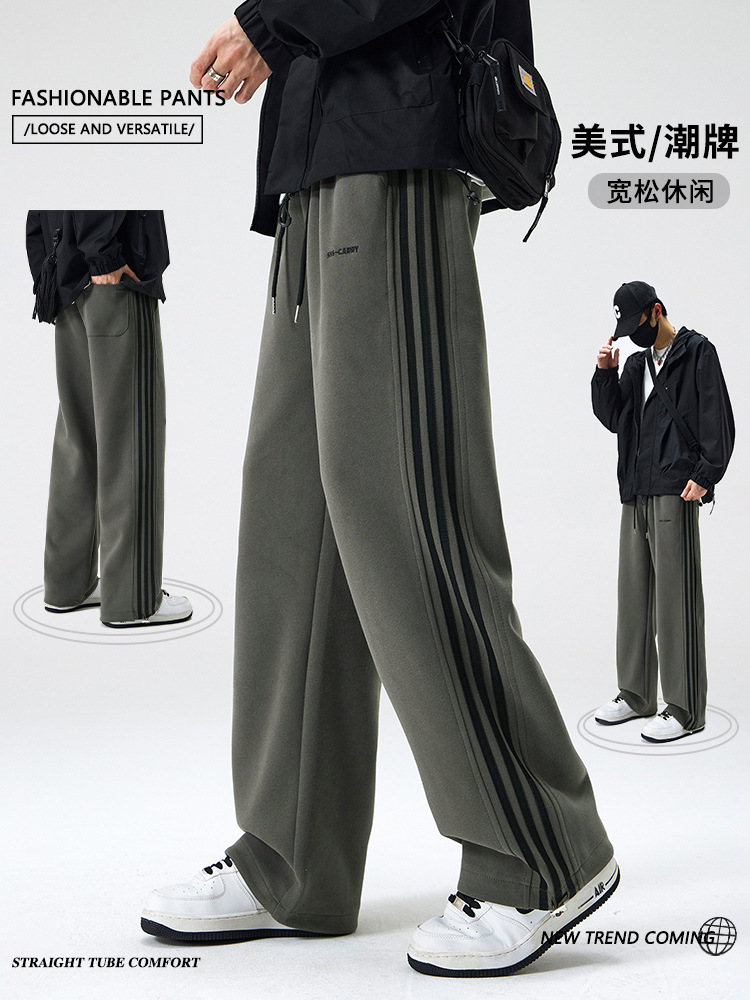 미국 하이 스트리트 패션 브랜드 삼선 스웨트팬츠 트렌디 남성 와이드 팬츠 스트레이트 레그 스포츠 바지 남성용 바지 가을 겨울