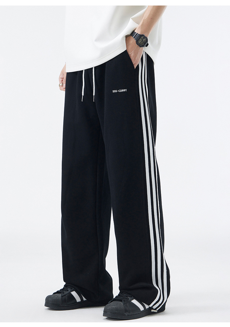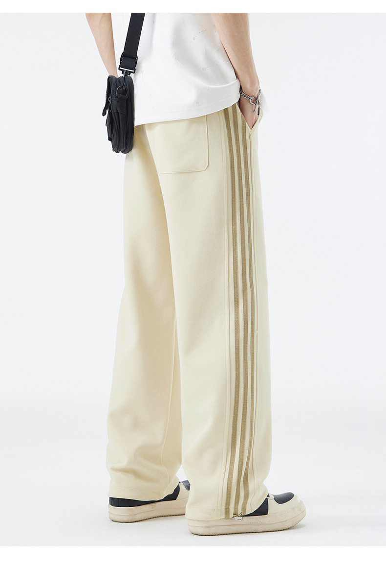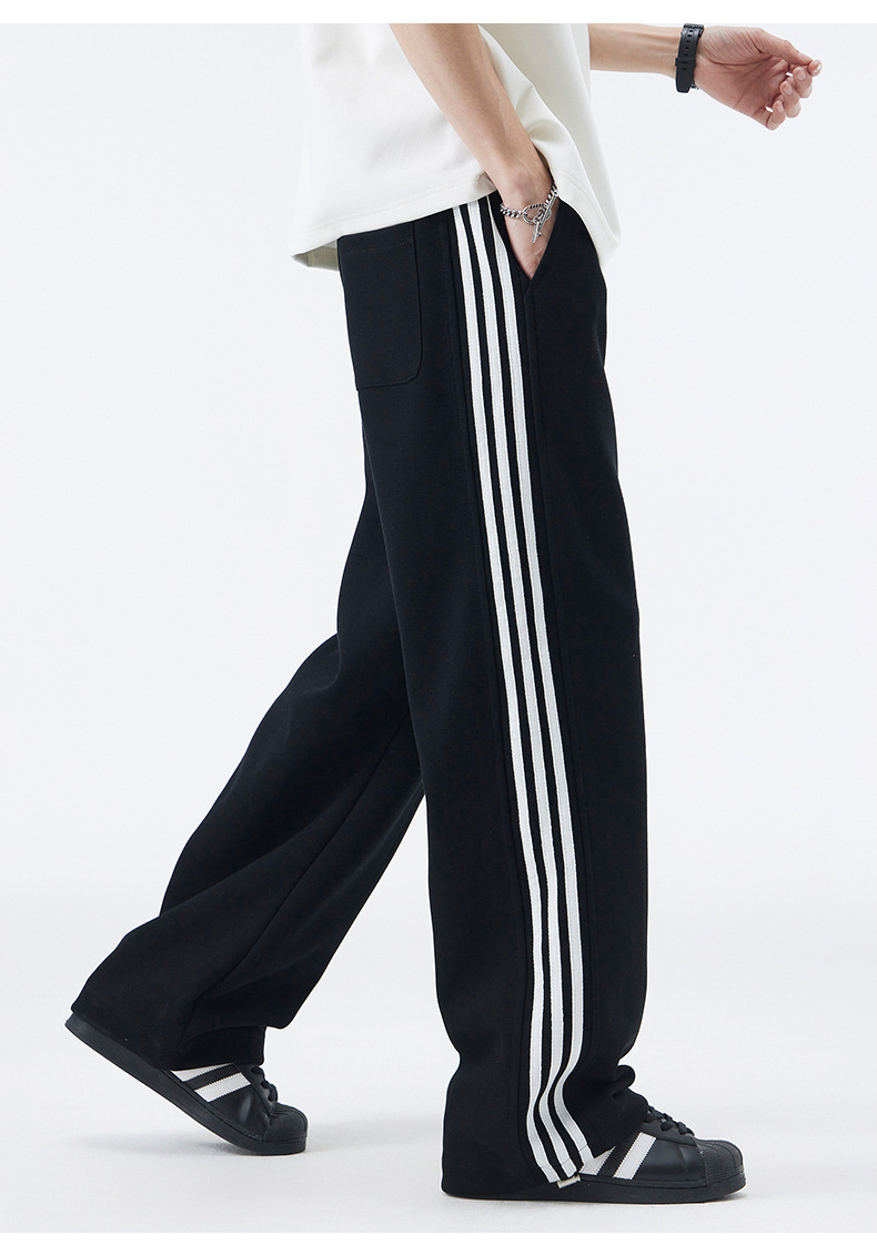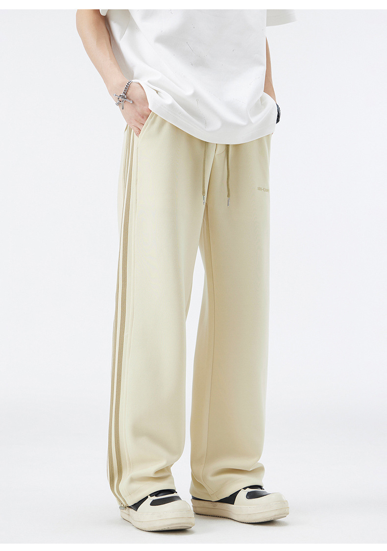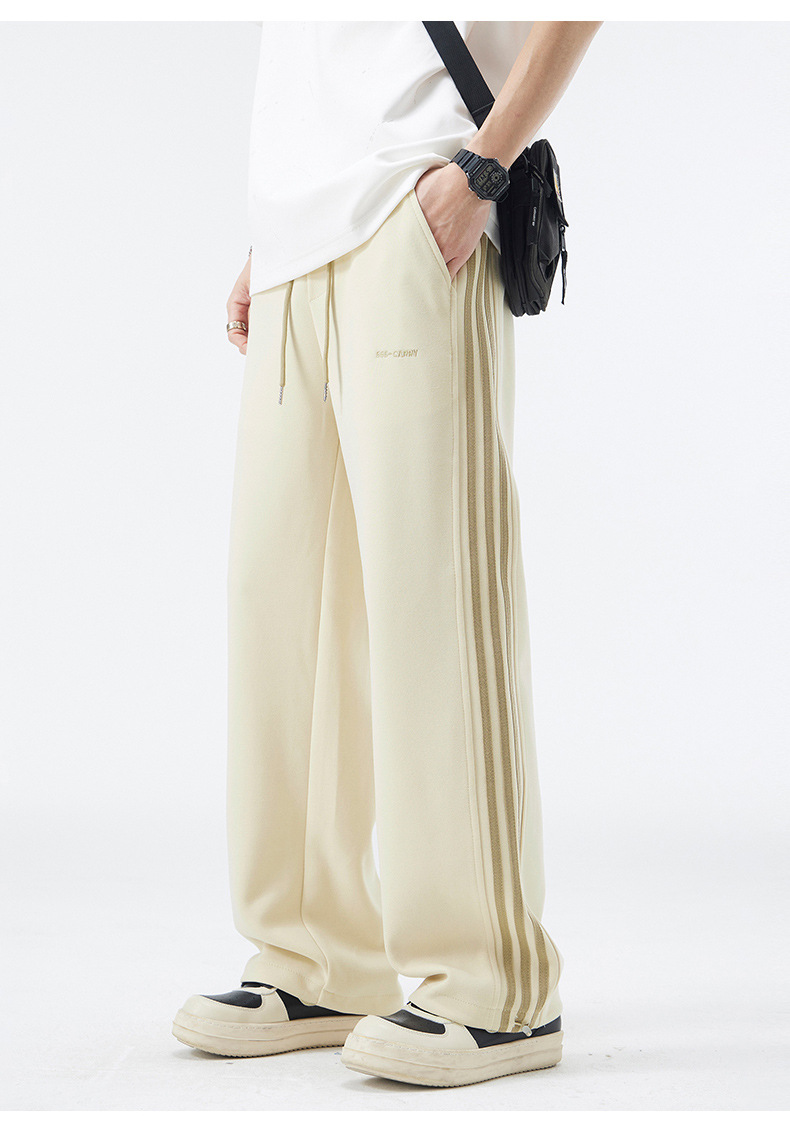 미국 하이 스트리트 패션 브랜드 삼선 스웨트팬츠 트렌디 남성 와이드 팬츠 스트레이트 레그 스포츠 바지 남성용 바지 가을 겨울