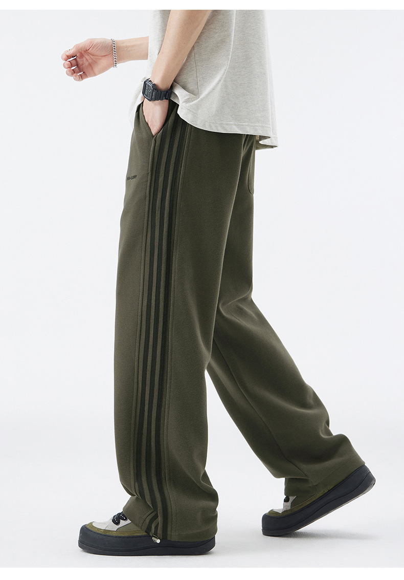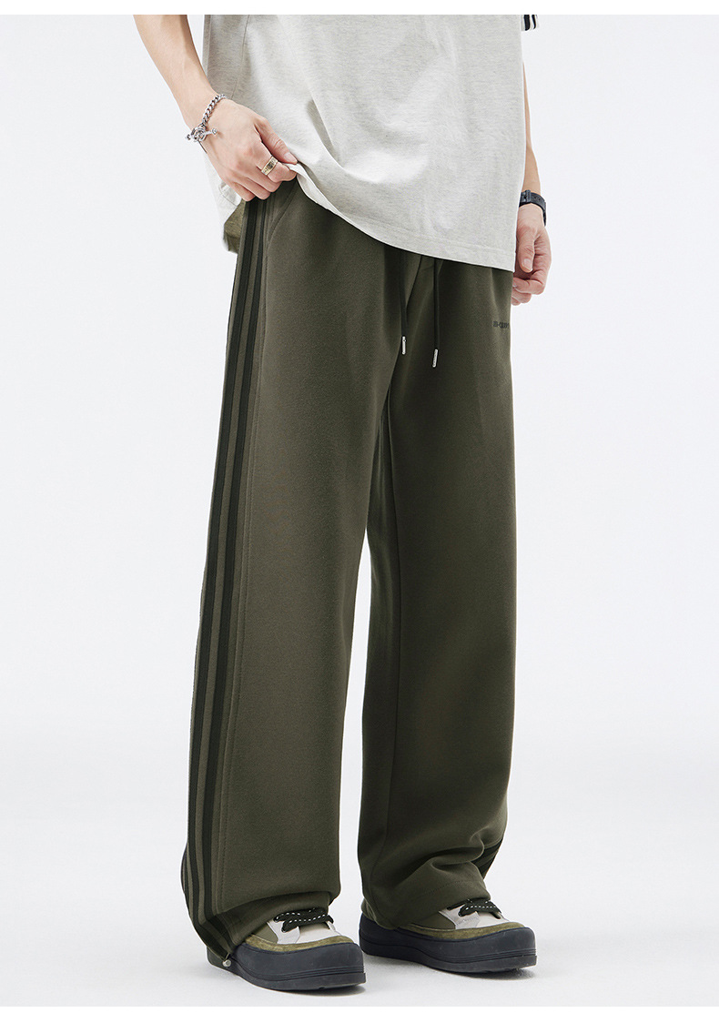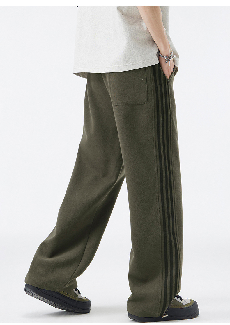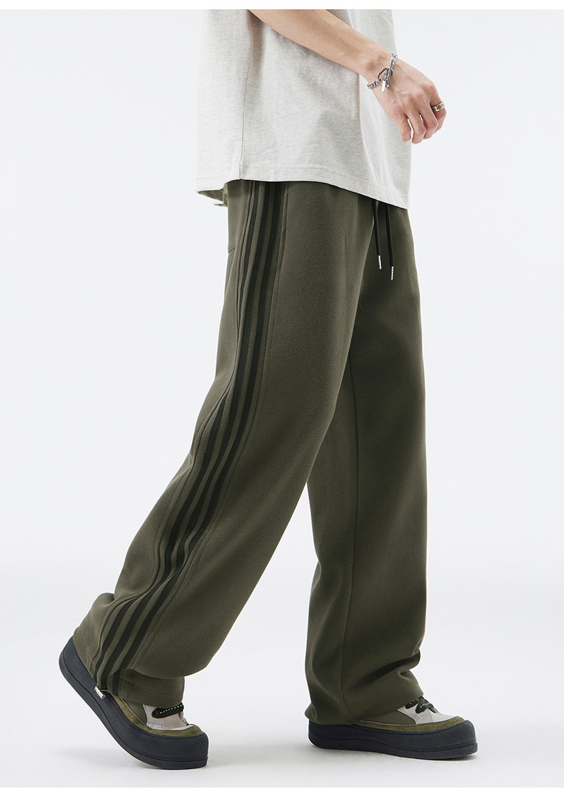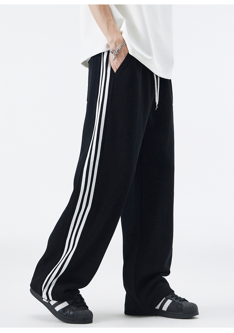 미국 하이 스트리트 패션 브랜드 삼선 스웨트팬츠 트렌디 남성 와이드 팬츠 스트레이트 레그 스포츠 바지 남성용 바지 가을 겨울