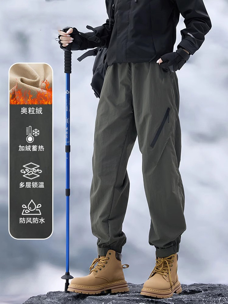 카멜 HJCAMEL 야외 기모 두꺼운 충전 바지 가을 및 겨울 새로운 방풍 스키 등산 크록 바지